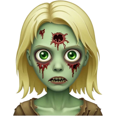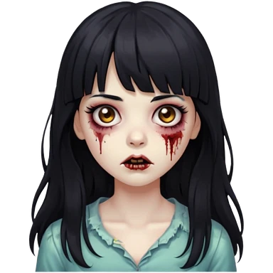 Zombie girl, black hair with bangs, slightly wavy, very long hair,long eyelashes, black eyes,iOS style emoji