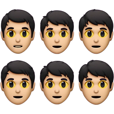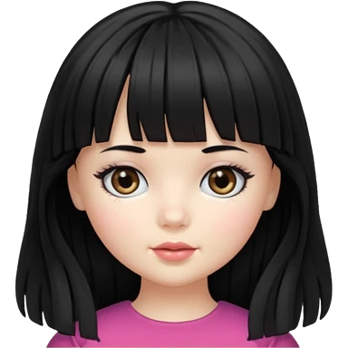Doll girll, black hair with bangs, slightly wavy, very long hair,long eyelashes, black eyes. emoji