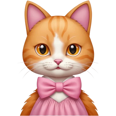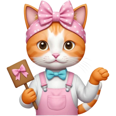 گربه ی نارنجی سفیدتقریباً لباسش حالت بیلر باشه سفید و صورتی پاپیون رو سرش باشه یک کاغذ بزرگ تزیین شده توی دستش باشه emoji