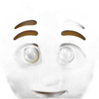 Овальне обличчя, гостре підборіддя, великі фіолетово-сині очі, густі вії, темні дугоподібні брови, кирпатий ніс, повні губи. Яскраво-фіолетове кучеряве волосся у хвості праворуч, коротка чілка/зачесане волосся, жовта бандана, оголена до пояса emoji