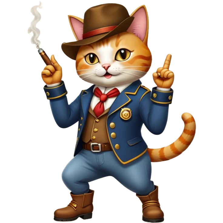 кот в сапогах танцует курит сигару и показывает фак emoji | AI Emoji Generator