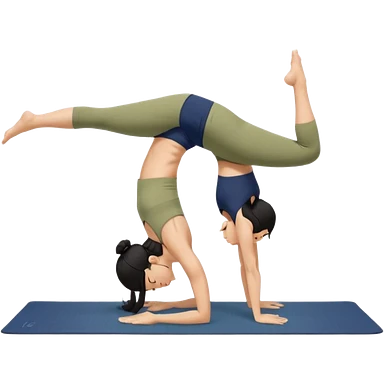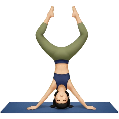 키는 작은편이고 앞머리 없는 단발머리야. 옆머리는 있고 요가를 좋아해. 남색 홀터넥을 많이 입고 민트색 요가바지를 자주 입어. 머리색은 검정색이고 하타요가를 좋아해. 바지색은 연한 연두색이고 요가매트는 카키색이야. 머리서기를 하고 있어 emoji