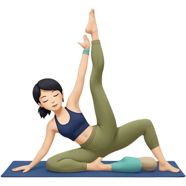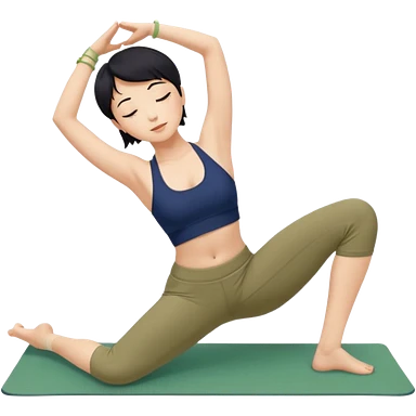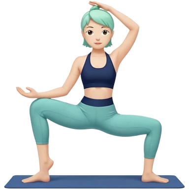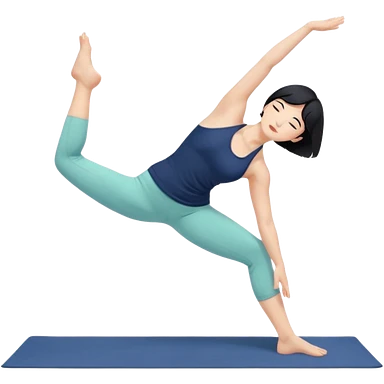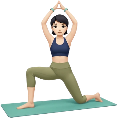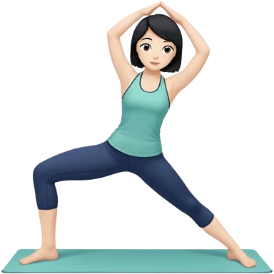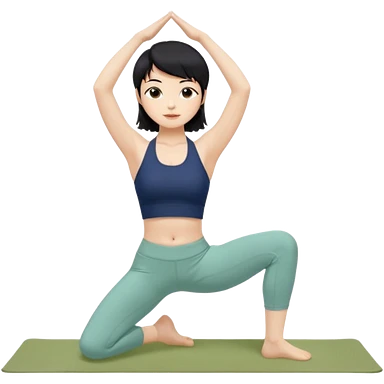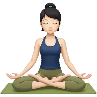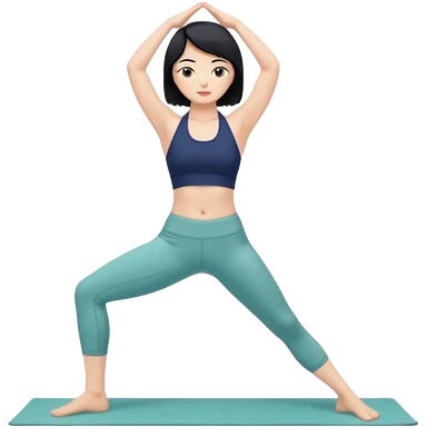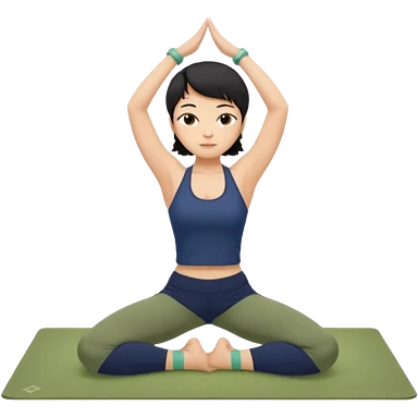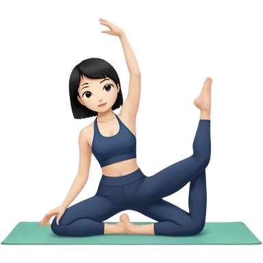 키는 작은편이고 앞머리 없는 단발머리야. 옆머리는 있고 요가를 좋아해. 남색 홀터넥을 많이 입고 민트색 요가바지를 자주 입어. 머리색은 검정색이고 하타요가를 좋아해. 바지색은 연한 연두색이고 요가매트는 카키색이야. 시르사파다 자세를 하고 있어. emoji