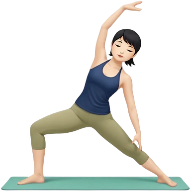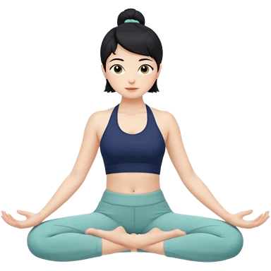 키는 작은편이고 앞머리 없는 단발머리야. 옆머리는 있고 요가를 좋아해. 남색 홀터넥을 많이 입고 민트색 요가바지를 자주 입어. 머리색은 검정색이고 하타요가를 좋아해 emoji