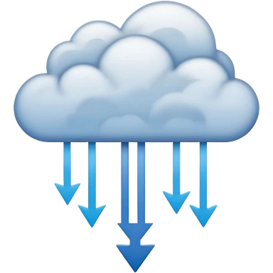 Abstract minimalist emoji showing a downward fading arrow dissolving into mist, with scattered broken lines and a heavy low-hanging cloud form above, symbolising a discipline slump and loss of structure. Muted tones, soft gradients, flat vector icon, transparent background. emoji