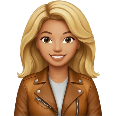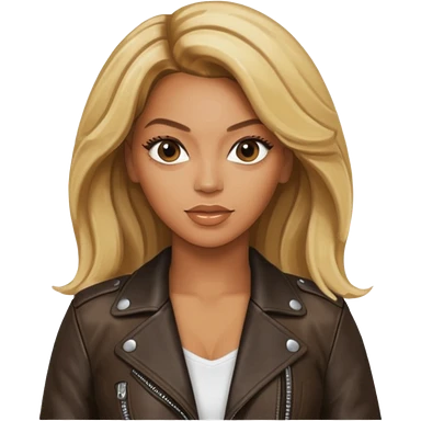 beyonce blonde hair jane wear leather jacket, smile happy emoji