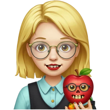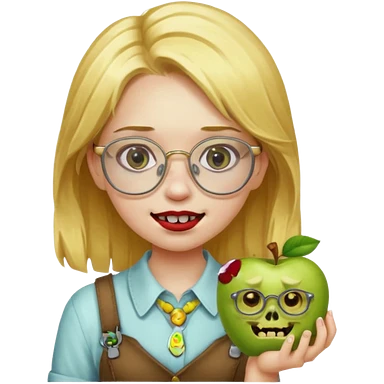apple zombie emoji girl with gold hair glasses and braces emoji