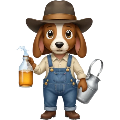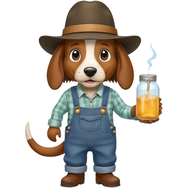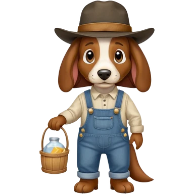 toothless hillbilly basset hound wearing a stetson and dungarees carrying moonshione emoji