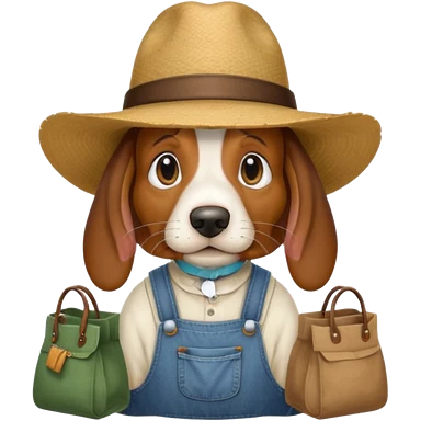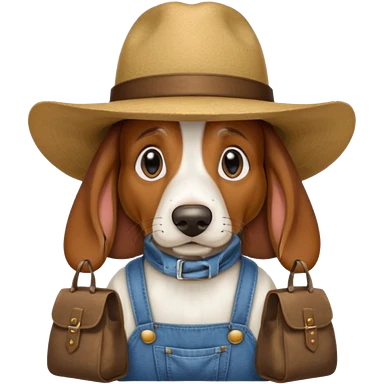 toothless hillbilly basset hound wearing a stetson and dungarees and has bagfs under the eys emoji