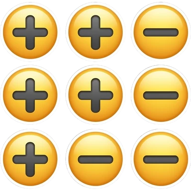 صمم نفس مجموعة الإيموجي الموجودة في الصورة التي أرسلتها، على خلفية داكنة، بنفس الحجم والدقة، ولكن كل إيموجي يجب أن تكون عليه نفس العلامات (+ أو -) الموجودة في الصورة الأصلية، بحيث كل زر يحتوي على نفس العلامة كما هو في النسخة الأولى. emoji