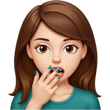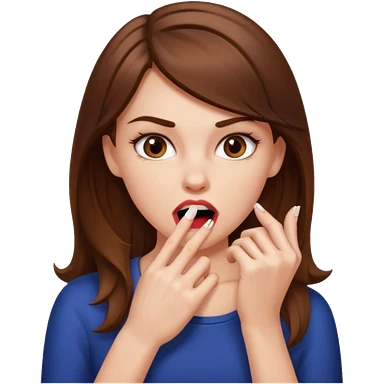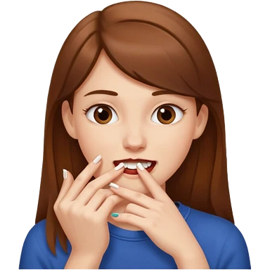 Une fille brune et blanche qui se mord l'ongle avec ses dents emoji