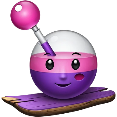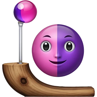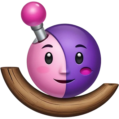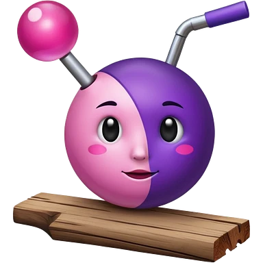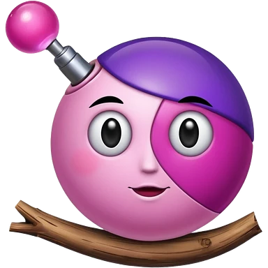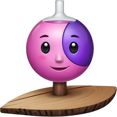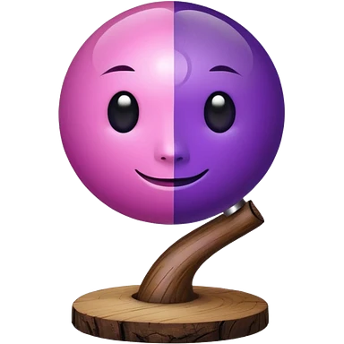 A half pink half purple ball with a face wooden stem followed by a glass stem on top of the wood stem tilted 90 degrees emoji