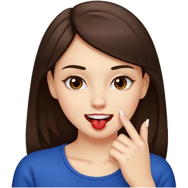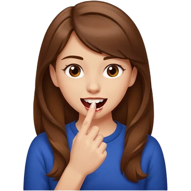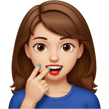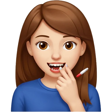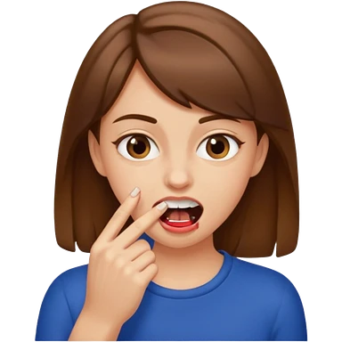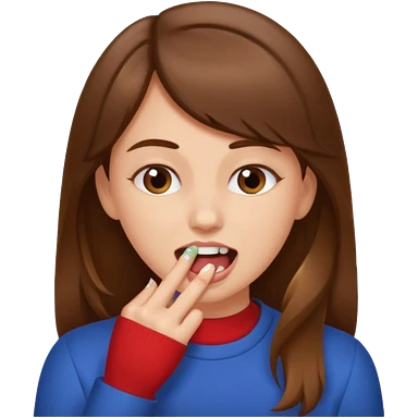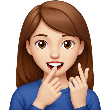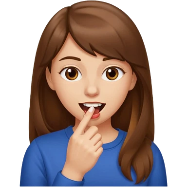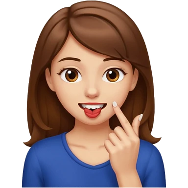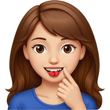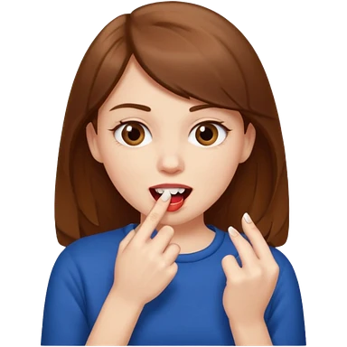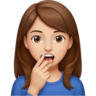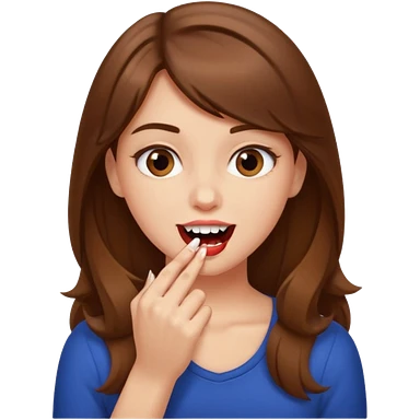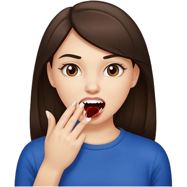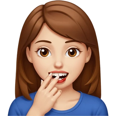 Fille brune et blanche qui a un ongle entre les canines de sa bouche emoji