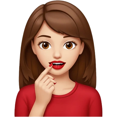 Une fille brune et blanche qui se mord un ongle entre ses dents (l'ongle est coincé entre les deux canines gauche) avec des manières comme si elle draguait qqn emoji