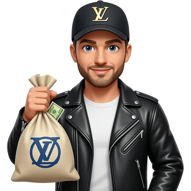 марень в кожаной куртке в кепке LV в руках сумка с деньгами и эмблемой OFM emoji