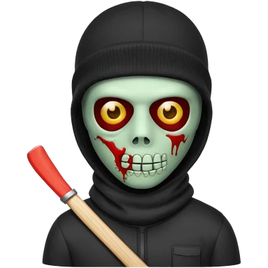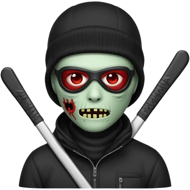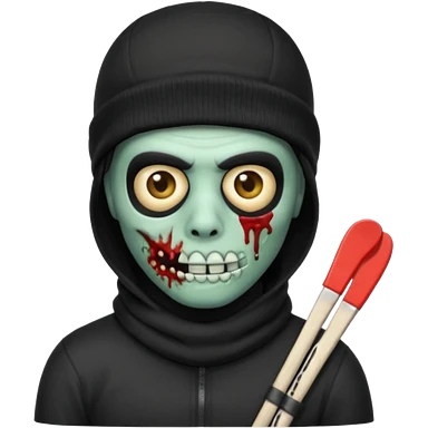 Zombie Emoji AppleIOS Style, Black Hair, SkiMask on Sideways Head, and Black shirt emoji
