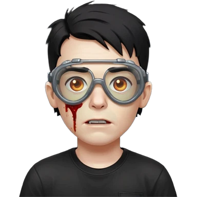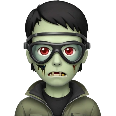 Zombie Emoji AppleIOS Style, lowfade Black Hair, Skin Goggles on right slide of The Head, and Black T-shirt emoji
