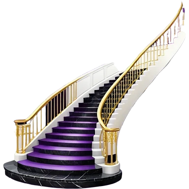 Luxurious black marble hallway stairs with gold and white accents with purple crystals in chandelier emoji