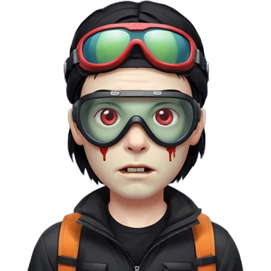 Zombie Emoji AppleIOS Style, lowfade Black Hair, Ski Goggles on right slide of The Head, and Black T-shirt emoji