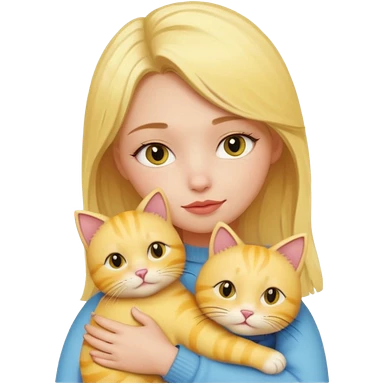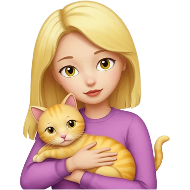Sarışın elinde kedi olan ve hafif ruj ve rimel sürmüş sarı kedisine sarılan bir kız emoji