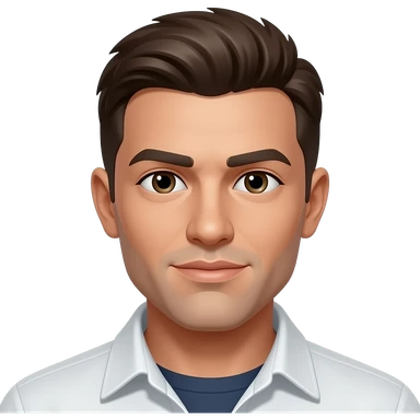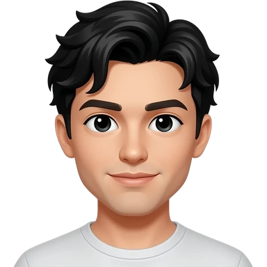 hombre blanco y cabello color negro, semi ondulado, cabello corto y ojos negros emoji
