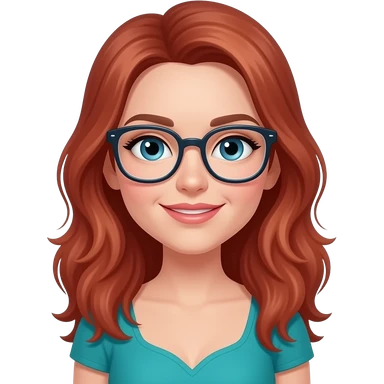 AJM - woman, glasses, faded red hair, blue eyes, teal dress emoji