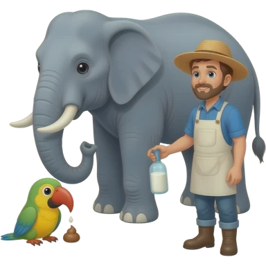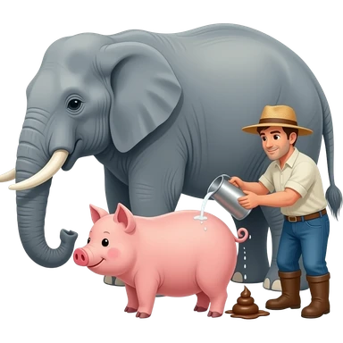 A pidgin pooing on a elephant who is getting milked by a farmer emoji