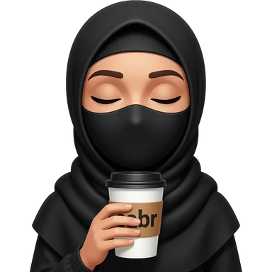create me a hijabi with coffee wearing black and she’s covering her face with the coffee cup and closing her eyes and the coffee cup needs to be beige emoji