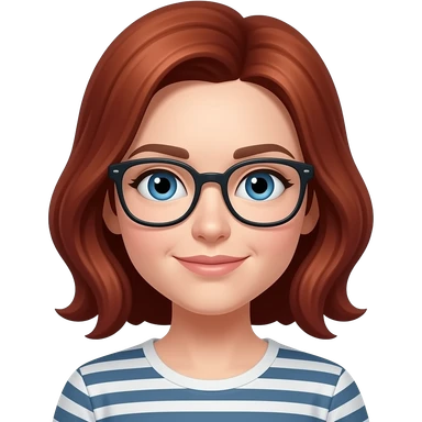 AJM - woman, glasses, faded red hair, blue eyes emoji