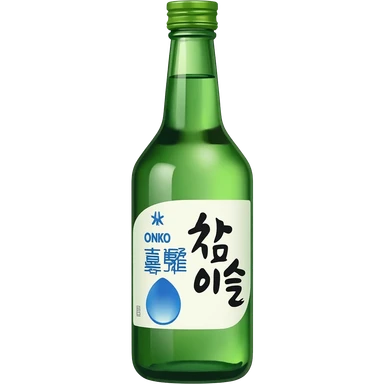 korean soju, green bottle with white label on it written 소주 emoji