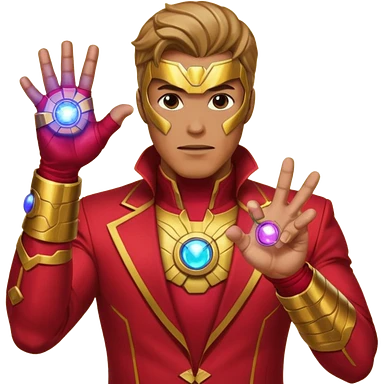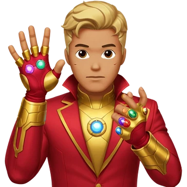 create an ironman with the infinity gauntlet emoji make it look really nice and make him snap his fingers with the infinity stone emoji