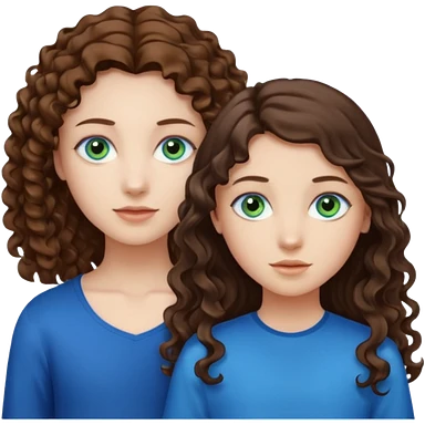 Two girls brunette one with straight long hair and blue eyes one with curly hair middle length and green eyes and the other a boy lighter brown with blue eyes emoji