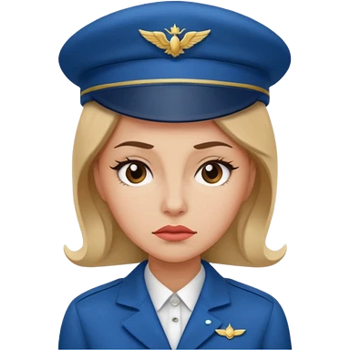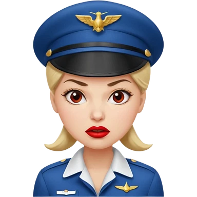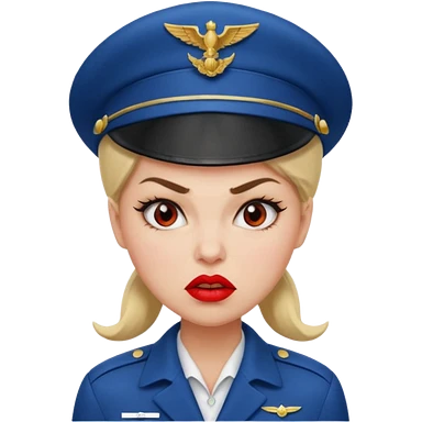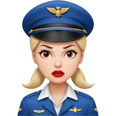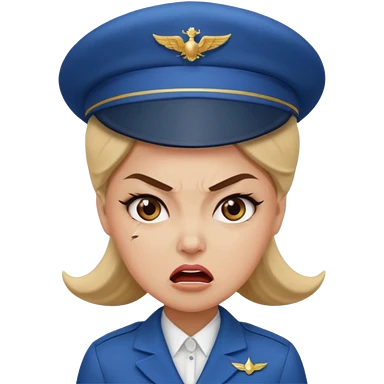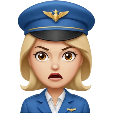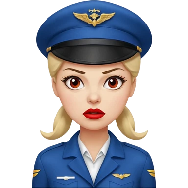 сгенерируй фото женщину с шапкой пилоткой стюардессы и злая emoji