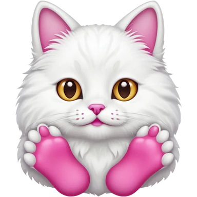 white cat fluffy paw, from the top, pink nails, cute emoji