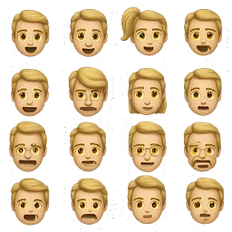 дівчинка з довгим русим волоссям і сірими очима та хлопець із чорним волоссям і карими очима emoji