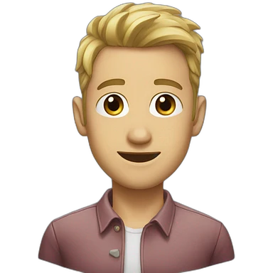 Петух в красно чёрной рубашке в клетку с белым бейджиком emoji