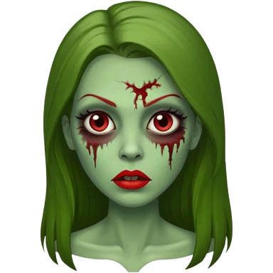 Zumbi feminino, de pele verde, cabelo longo liso e castanho. Labios vermelhos, rosto oval e cilios grandes emoji