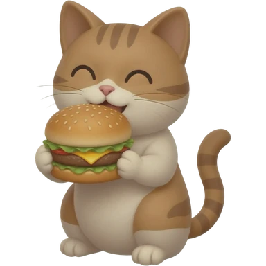 חתול אוכל המבורגר וכול הפנים שלו מלוחלוחות בצבע חום emoji