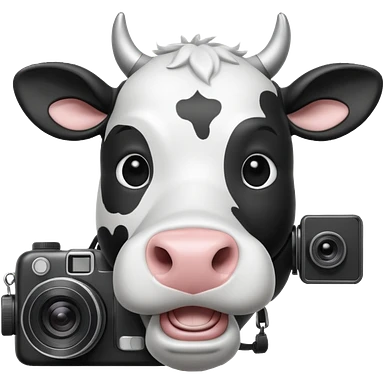 cartoon cow's head with camera emoji