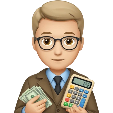 finanzwirt mit geld und taschenrechner in den händen emoji