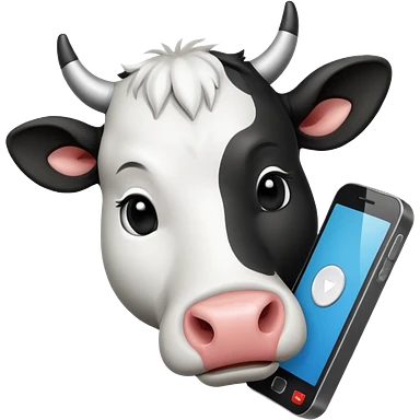 cartoon cow's head with cell phone emoji