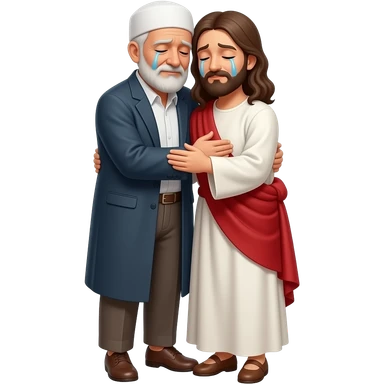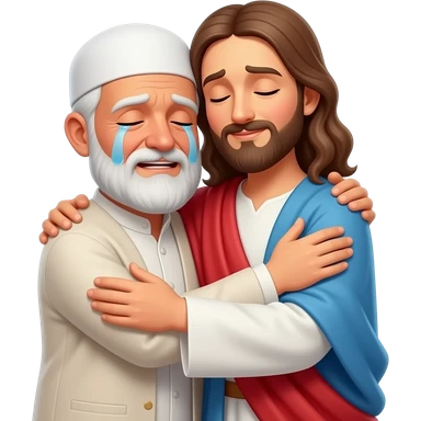 картинка во весь рост пожилой мужчина мусульманин со слезами на глазах обнимает Иисуса во весь рост emoji