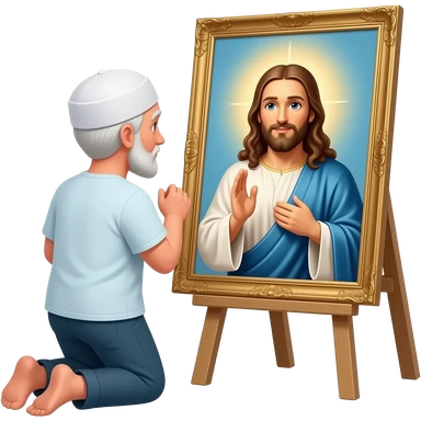 пожилой мужчина мусульманин стоит на коленях перед Иисусом emoji