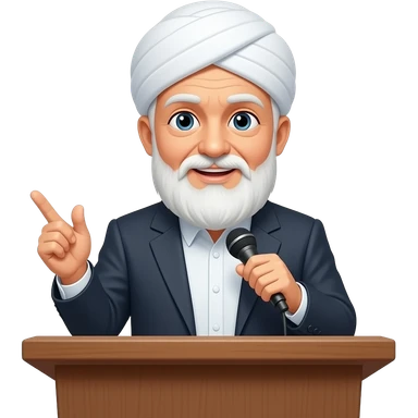 пожилой мужчина мусульманин во весь рост в белой тюбитейке за кафедрой говорит правиильные слова emoji
