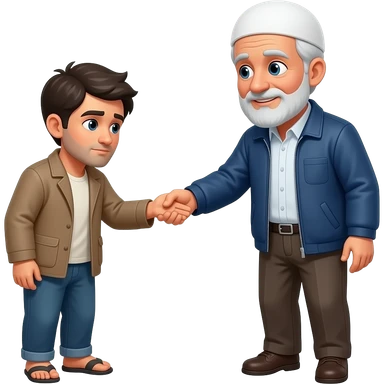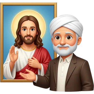 пожилой мужчина мусульманиенях перед Иисусом, который стоит перед ним emoji