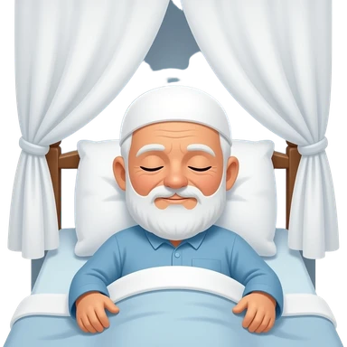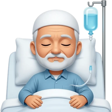 пожилой мужчина мусульмнин с закрытыми глазами лежит в постели под капельнтцой emoji