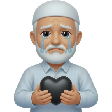 грустный пожилой мужчина мусульманин с черным сердем в руках emoji | AI Emoji Generator