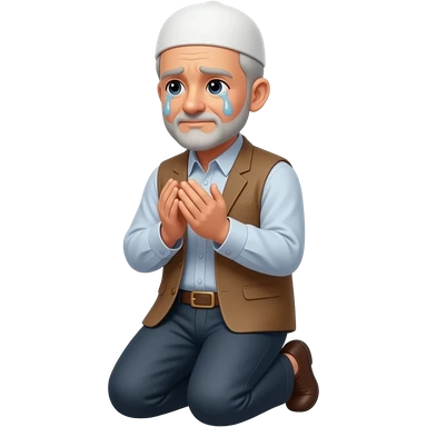 пожилой мужчина мусульманин со слезами молиться на коленях emoji