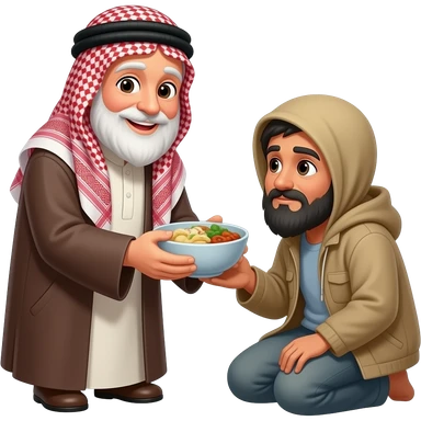 пожилой мужчина мусульманин в тюбитейке подаёт бедному emoji