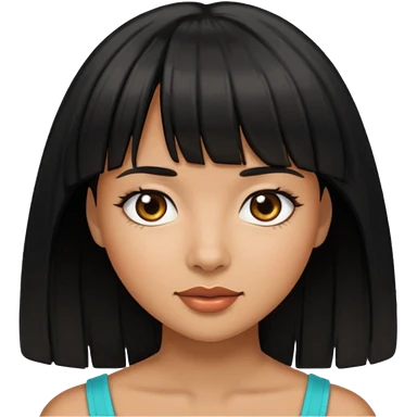 Woman a little tan with black hairs and bangs emoji